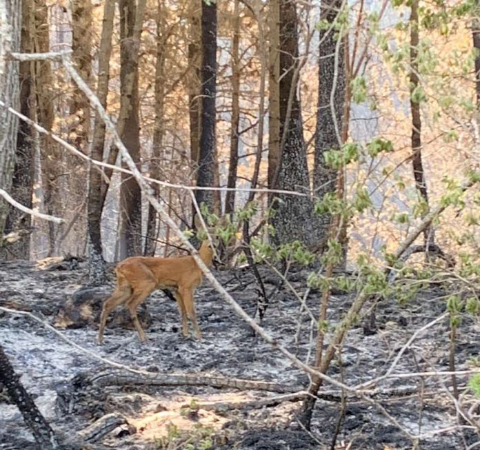 Sretni i tužni istovremeno… Sretni jer je ova srna preživjela sve protekle dane strašnoga požara, a tužni jer nema više svoj dom. Sreća pa je veliki dio planine spašen, Čvrsnica je velika i srna će pronaći novi dom, piše blidinje.net.
