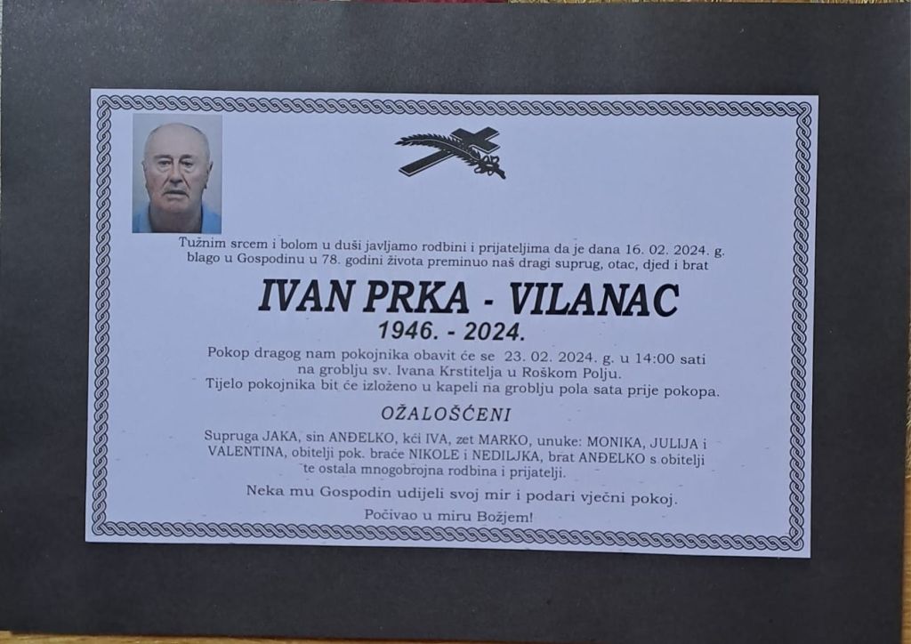 U petak, 16. veljače 2024. godine u 78. godini života blago u Gospodinu preminuo je Ivan Prka – Vilanac.