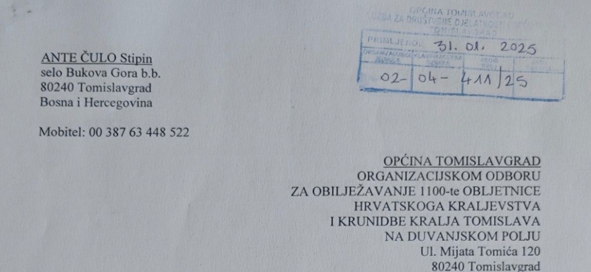 Ante Čulo, Stipin iz Bukove Gore uputio je Općini Tomislavgrad i Organizacijskom odboru za obilježavanje 1100. obljetnice hrvatskog kraljevstva i krunidbe kralja Tomislava na Duvanjskom polju, otvoreno pismo u kojem traži ispravljanje krivo navedenih činjenica vezanih za repliku krune kralja Tomislava.