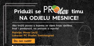 Prodajni centar Prodex u Tomislavgradu zapošljava djelatnika na poziciji mesara