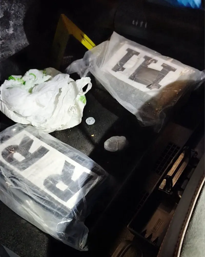 Prilikom pretresa vozila, koji je obavljen uz asistenciju Jedinice za podršku Uprave policije i službenog psa, u Seat Cupri pronađena su dva paketa bijele praškaste tvari koja izgledom podsjeća na kokain, ukupne težine oko dva kilograma, te dva manja paketa suhe biljne tvari koja asocira na cannabis sativu.