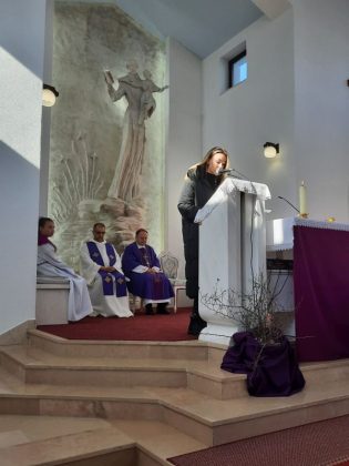 Na samom početku biskupa su u ime vjernika pozdravile g-đa Iva Bagarić prigodnim i biranim riječima, te g-đa Irena Šteko uručivši biskupu buket cvijeća.