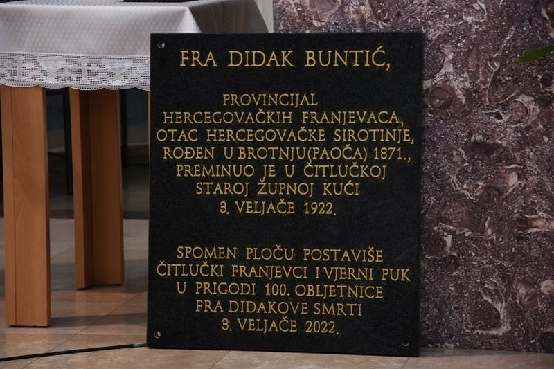 Hercegovački puk neizmjerno je zahvalan fra Didaku Buntiću za nebrojena dobročinstva, a jedna takva zahvala uklesana je i na spomen ploču koja je danas blagoslovljena.