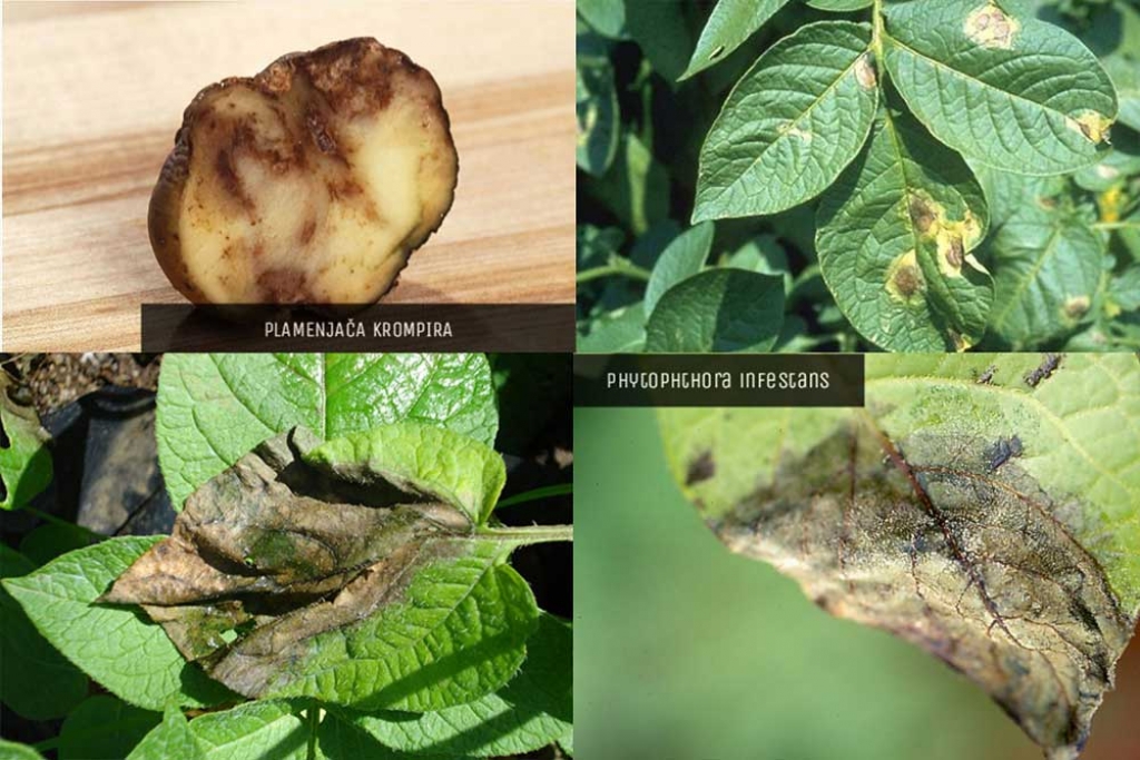 Plamenjaču krumpira uzrokuje patogen Phytophthora infestans. Za razvoj su pogodni visoka vlažnost, rosa i umjerena temperatura do 15-26 stupnjeva Celzijevih. Kada su vanjski uvjeti povoljni, bolest se jako brzo širi i pustoši polja u roku od 3 tjedna. Najviše utječee na lišće krumpira.