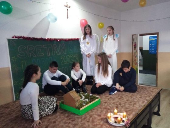 Zahvalnost svojim obiteljima ali i malom Božiću iskazali smo božićnom priredbom u koju smo utkali svoju ljubav i od Boga nam darovane talente. Bilo je tu složne pjesme, lijepih recitacija i zanimljivih igrokaza kojima smo obilježili svršetk prvog obrazovnog razdoblja i izrazili dobrodošlicu blagdanima koje očekujemo. Neka su nam svima sretni!