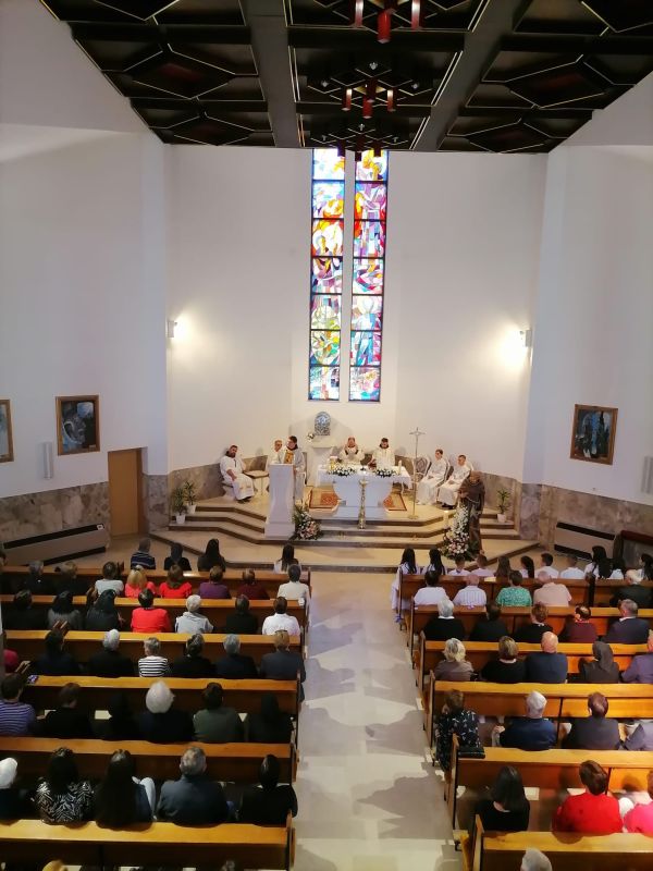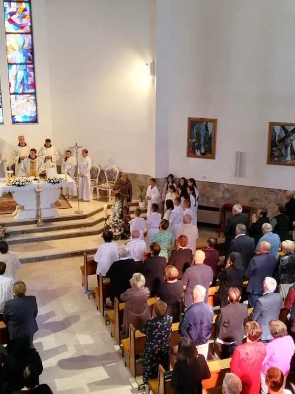 Središnje misno slavlje u 11 sati predslavio je fra Andrija Majić član samostanske zajednice na Humcu, župni vikar na Humcu i povjerenik naše Provincije za Svetu zemlju.