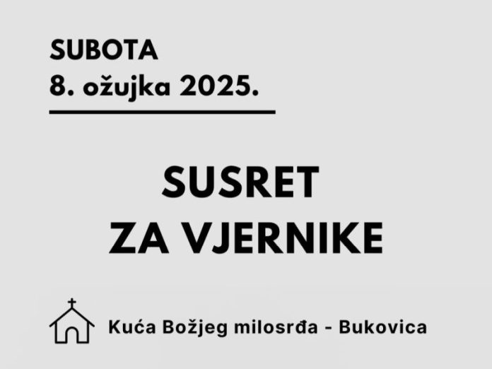 Pozivamo sve vjernike na Susret za vjernike koji će se održati 8. ožujka 2025. godine u Kući Božjeg milosrđa – Bukovica, od 17:00 do 19:00 sati.