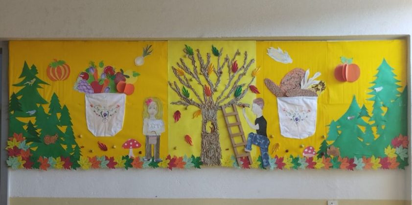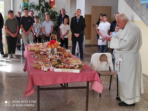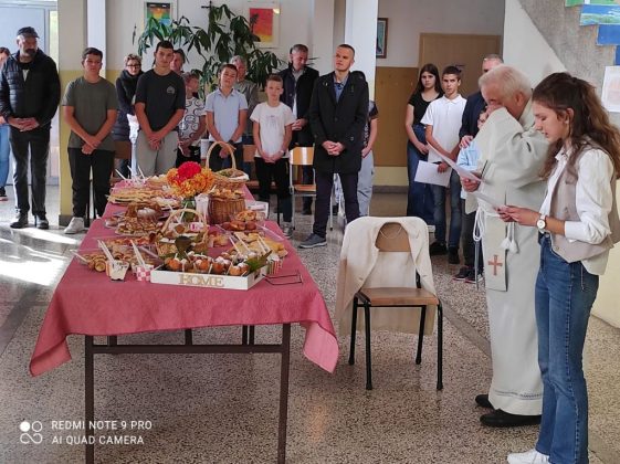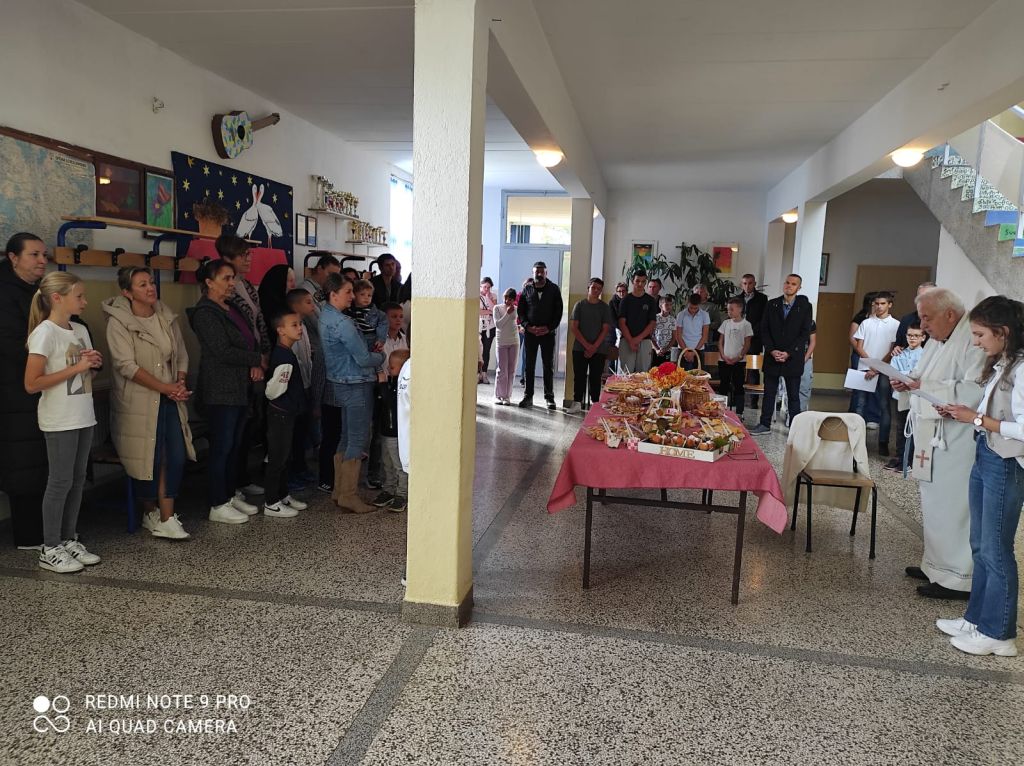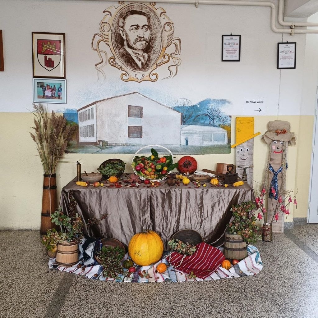U školskom hodniku priređeni su prigodni izložbeni panoi s učeničkim radovima, ali i stolovi puni mirisnih krušnih proizvoda i plodova, koje su skupa sa svojim obiteljima napravili i donijeli naši učenici.
