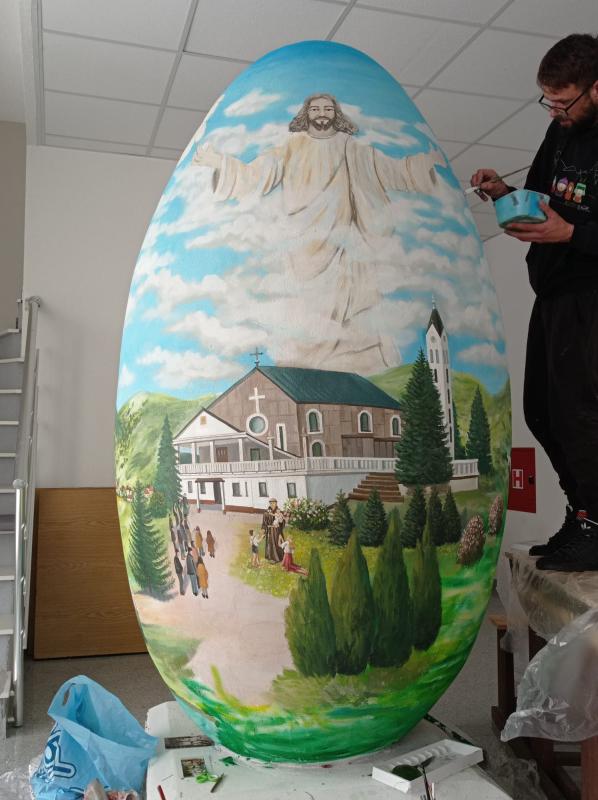 Ovih je dana završeno veliko šujičko uskrsno jaje koje su protekla dva – tri tjedna oslikavali duvanjski umjetnici Ante Braovac i Enis Redžepagić Hek.