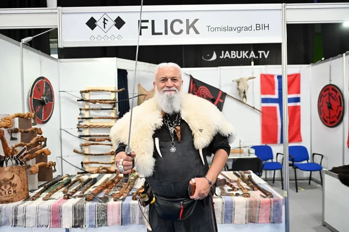 “Ovo mi je sedmi put na Mostarskom sajmu, a isto toliko godina se otprilike i bavim izradom ovakvih sjekira. Kod sebe u Stipanićima kod Tomislavgrada imam vikinšku kuću Kavurci, a također tu je i vikinško selo. Tko želi može me posjetiti, a ima niz raznih sadržaja poput bacanja sjekira te pucanja iz strijele iz luka. Tu je i vikinški muzej, a također nudim i smještaj ako netko želi prespavati”, rekao je za portal Jabuka.tv duvanjski viking Stipe Pleić.