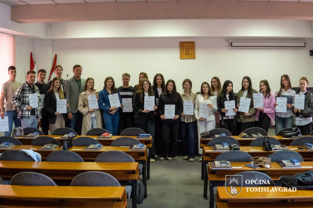 Općinski načelnik Ivan Buntić i predsjednik Općinskog vijeća Ante Ćurić upriličili su danas prijam za maturante Gimnazije Marka Marulića i Srednje strukovne škole Tomislavgrad koji su svoje srednjoškolsko obrazovanje završili s odličnim uspjehom te su im ovom prilikom uručene pohvalnice i prigodni pokloni.