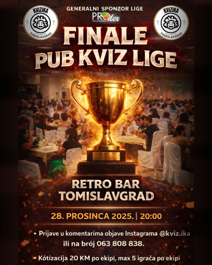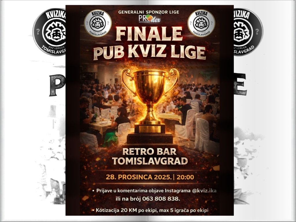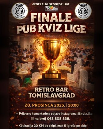 U subotu je odigrano predzadnje kolo pub kviz lige u Tomislavgradu. Bilo je vrlo neizvjesno i napeto kolo gdje su sve ekipe kviz odradile jako dobro. Bilo je preko 100 natjecatelja, mnoštvo ekipa, a posebno veseli činjenica da su ekipe jako mlade te pokazuju konstantan kvizaški napredak.