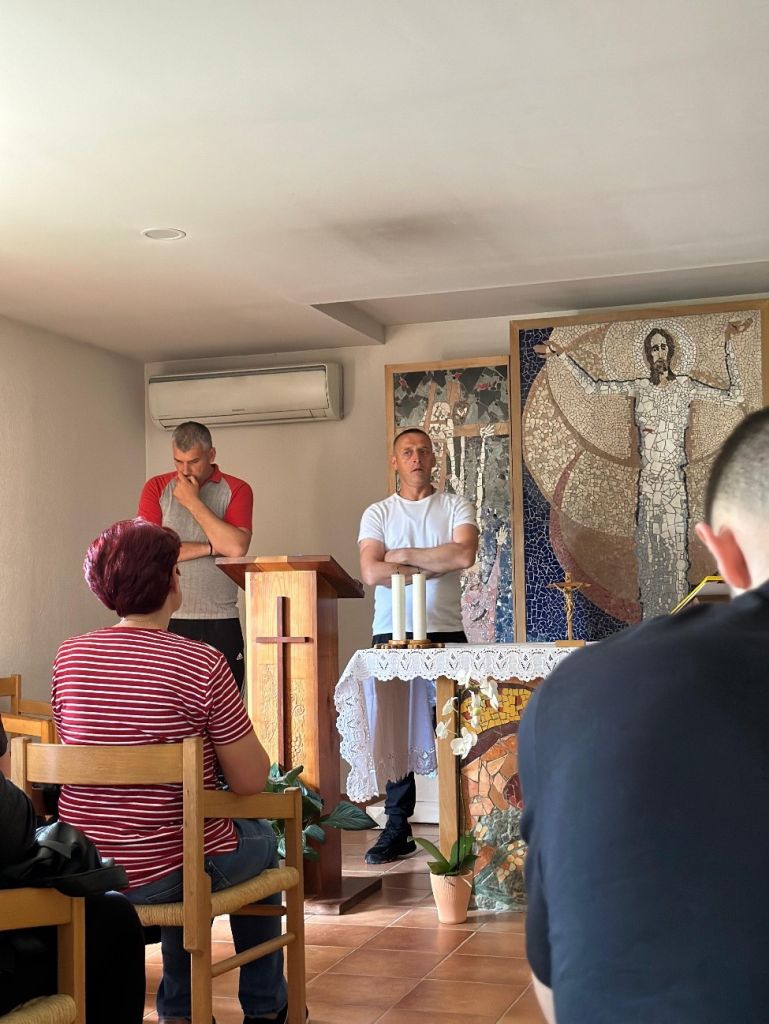 Potom su nam dva štićenika „Milosrdnog oca“ svjedočila o svom životnom, padu u robovanje o kocki, kriminalu, drogi i borbi da se kroz zajednicu izvuku iz tog pakla ovisnosti te da se oslobođeni vrate u život svojim suprugama i djeci.