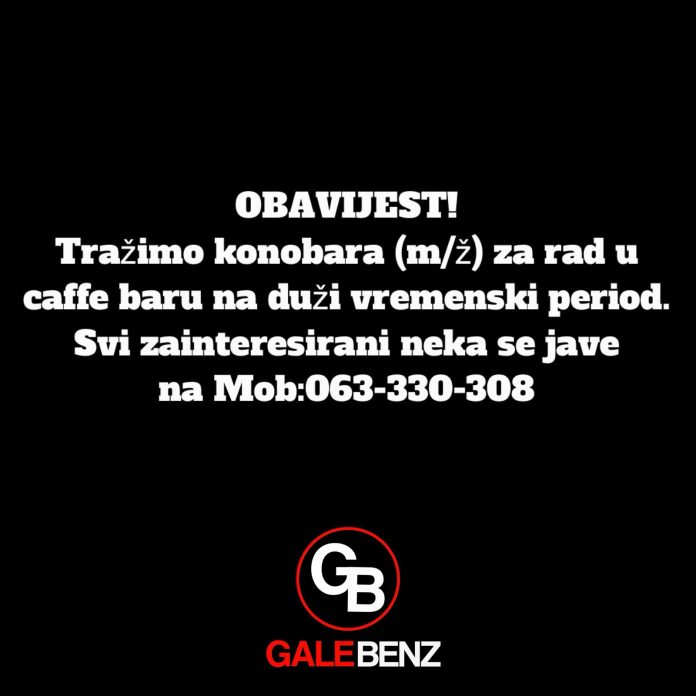 Naslovnica Obavijesti/ Najave Gale Benz: Tražimo konobara/icu za rad u caffe baru Obavijesti/ NajaveOglasi Gale Benz: Tražimo konobara/icu za rad u caffe baru Objavio TC - 9. rujna 2025. Tražimo konobara (m/ž) za rad u caffe baru na duže razdoblje. Zainteresirani se mogu javiti na broj mobitela: 063 330 308. Galebenz VEZANI ČLANCIVIŠE OD AUTORA Tomislavgrad: Pronađena osobna iskaznica Najava: Zakazana 23. sjednica Skupštine HBŽ Objavljeni javni pozivi za razvoj turizma u FBiH Međunarodna nagrada Luciji Zorić 19. travnja 2026. Pronađen ključ ispred Franjevačkog samostana u Tomislavgradu 19. travnja 2026. Matica hrvatska Travnik ustanovljuje nagradu „Ivo Andrić“ 17. travnja 2026. Učenici Srednje glazbene škole Tomislavgrad briljirali na Federalnom natjecanju u Srebreniku 17. travnja 2026. U Livnu će se graditi nova bolnica, investicija vrijedna 48 milijuna... 17. travnja 2026.