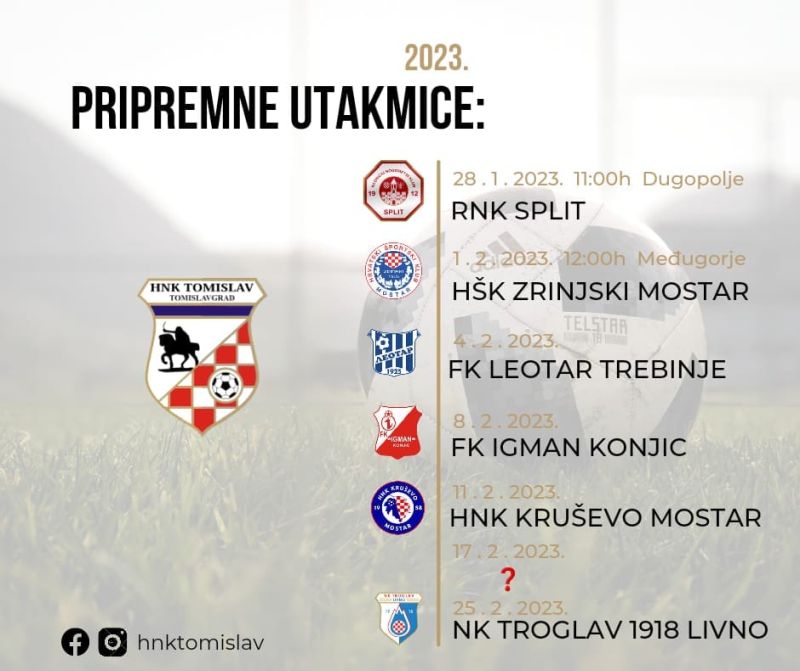 Podsjetimo, HNK Tomislav će odigrati 6 ili 7 pripremnih utakmica a raspored možete pogledati na donjoj slici.