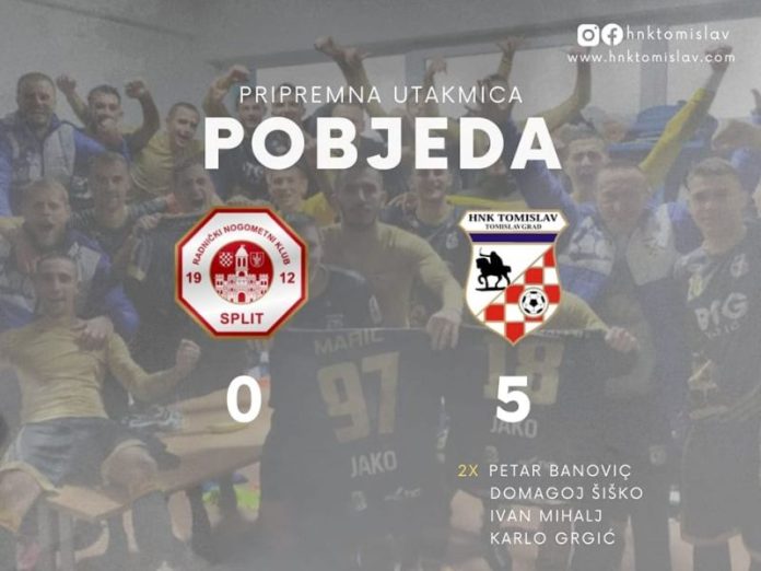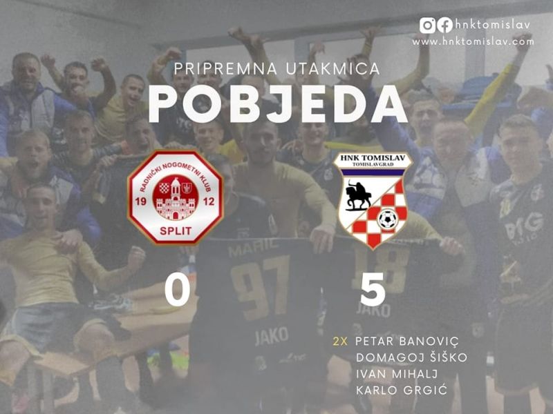 Jučer su nogometaši HNK Tomislav odigrali prvu pripremnu utakmicu u Dugopolju protiv ekipe RNK Split. Pobijedili su rezultatom 5:0 i time nastavili pobjednički niz iz prošle sezone.