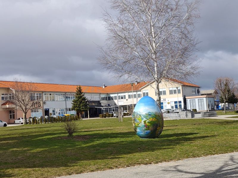 Veliko uskrsno jaje – oslikana pisanica s motivima iz našega zavičaja, ponovno je postavljena na Trgu dr. Franje Tuđmana u Tomislavgradu.
