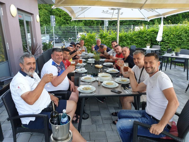 Nakon što su se okupili u Restaurant G’nuss u Maintal-Dörnigheimu kod Frankfurta na Majin, gdje su bili gosti vlasnika tog restorana Gordana Propadala, hrvatski navijači, svi podrijetlom iz livanjske općine, su se s tri kampera zaputili u Nizozemsku.