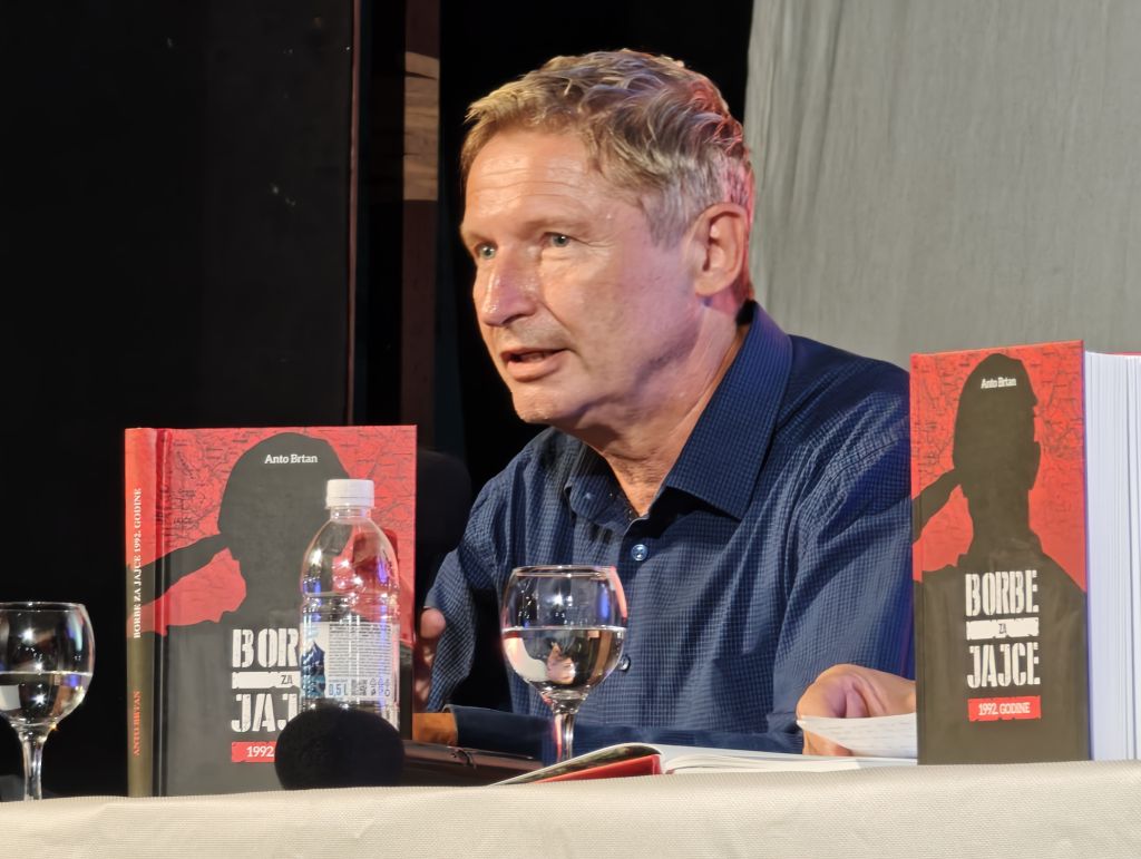 – Na kraju knjige nalazi se jedna stranica bilješke o autoru, Anti Brtanu, koji je bio pripadnik interventnog voda 1. jajačke bojne, poslije toga zapovjednik izviđačkoga voda da bi na kraju došao do diplomata, visokog časnika obavještajnog sustava i, evo, čovjeka koji je u stanju napuniti ovu dvoranu sa svojom knjigom. Čestitamo mu!