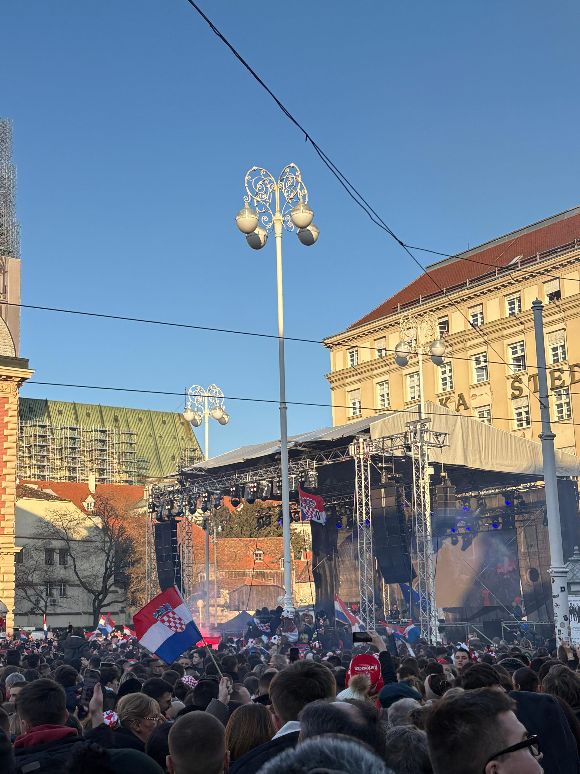 Nakon protokolarnog dijela dočeka, hrvatski rukometaši autobusom su krenuli prema Trgu bana Jelačića gdje ih čeka na tisuće navijača, među njima su i naši Duvnjaci.