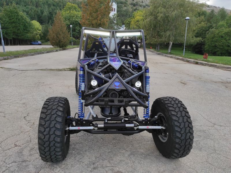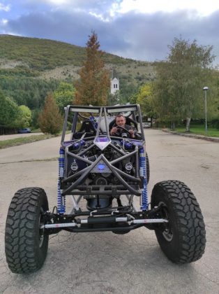 Iko u trenu govori nekoliko tehničkih detalja. Vozilo se zove Predator. Šasija je napravljena „iz glave“, od savijenih i zavarenih cijevi. Motor je V8 od BMW-a, izvorne snage 218 KS, a nakon friziranja oko 250 KS s okretnim momentom od 290 Nm. Portali su od Grand Cherokee, a ima tu dijelova i od Mercedesa, Lade, ali i skutera i nekih fitness sprava. Vozilo je teško oko 1150 kg (šasija oko 230 kg, motor 206, svaka guma i felga 43 kg, diferencijali 110 i 85 kg, reduktor i kardani oko 30 kg,…).