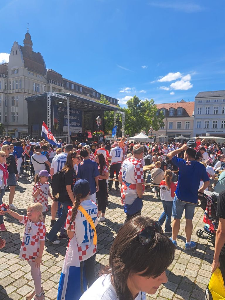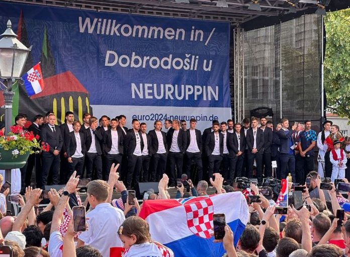 Danas prava navijačka ludnica trese njemački gradić Neuruppin. Mjesto udaljeno 80 kilometara od Berlina bit će dom Vatrenih. Na trg u gradu Neuruppinu nogometna reprezentacija Hrvatske stigla je oko 18 sati. Odmah po dolasku Dalića i igrače primili su domaćini na glavnom gradskom trgu na čelu s gradonačelnikom Nicom Ruhleom i predsjednikom nogometnog saveza Brandenburga Jensom Kadenom, uz hrvatskog veleposlanika Gordana Bakotu.