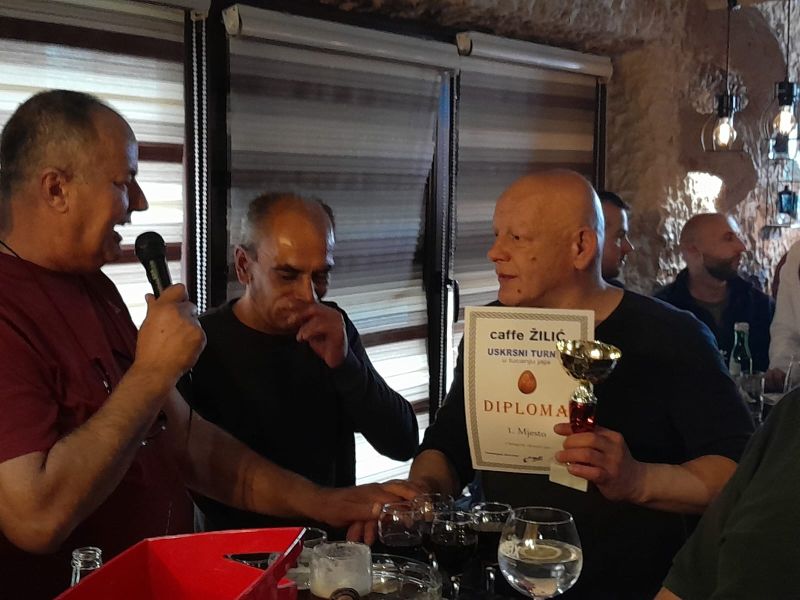 I još jedna bitna stvar. U caffe bar Žilić stigao je i pobjednik s turnira u tucanju jaja u Bukovici, Mile Stanić koji se također pridružio ovoj humanitarnoj akciji i darovao nagradu za liječenje male Tamare.