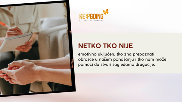 Kod nas se još uvijek vjeruje da je dovoljno “izjadati se prijateljici” ili “pomoliti se i proći će”. I premda razgovor i vjera mogu puno pomoći, ponekad nam treba još nešto – netko tko nije emotivno uključen, tko zna prepoznati obrasce u našem ponašanju i tko nam može pomoći da stvari sagledamo drugačije.