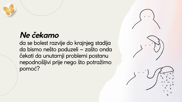 No, što kada bismo o mentalnom zdravlju brinuli na isti način kao o fizičkom? Ne čekamo da se bolest razvije do krajnjeg stadija da bismo nešto poduzeli – zašto onda čekati da unutarnji problemi postanu nepodnošljivi prije nego što potražimo pomoć?