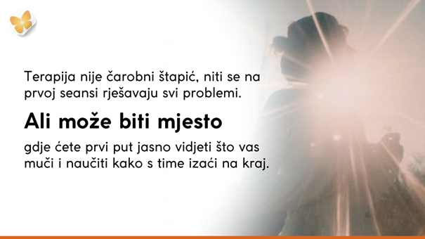 Terapija nije čarobni štapić, niti se na prvoj seansi rješavaju svi problemi. Ali može biti mjesto gdje ćete prvi put jasno vidjeti što vas muči i naučiti kako s time izaći na kraj.