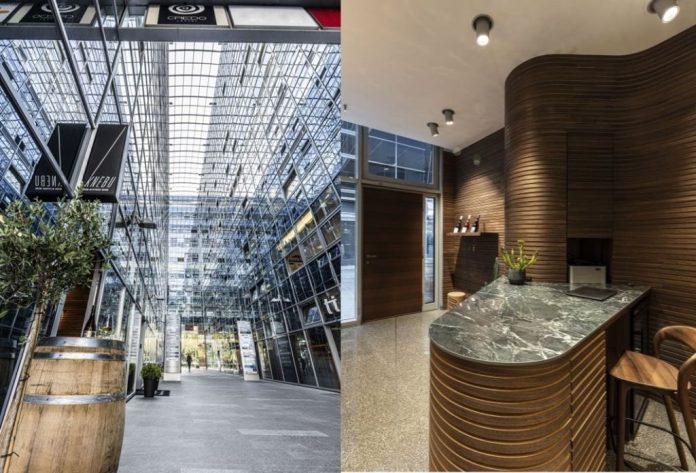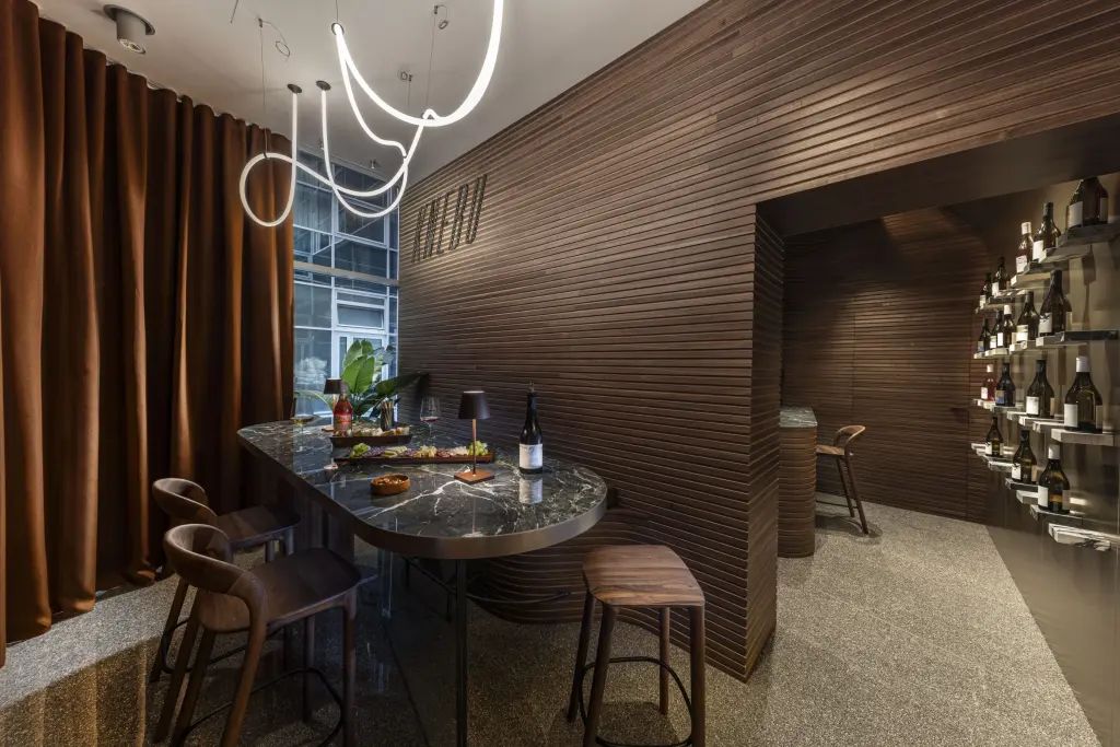 Osim kušaonice Knebu vina u Tomislavgradu, krajem rujna otvoren je i spomenuti Knebu Wine Store Zagreb u vibrantnoj poslovnoj zoni, na križanju Radničke i Vukovarske ulice. Dizajn interijera inspiriran je organskim formama, a potpisuje ga duo Marin Grubić i Dino Perčić iz splitskog arhitektonskog studija DWG. Zidovi obučeni u vodoravne letvice od oraha fluidno oblažu cijeli interijer, stvarajući ugodnu atmosferu. Vinoteka se sastoji od dva dijela: prodajno-prezentacijskog te malo intimnijeg, degustacijskog dijela.