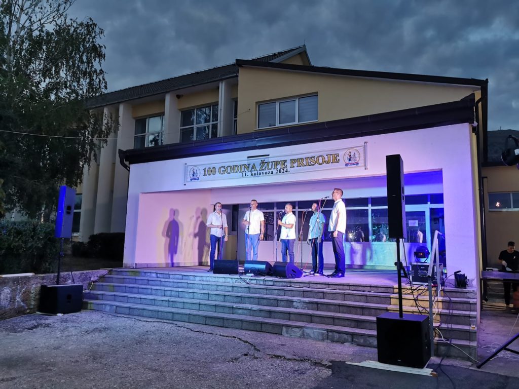 Danas od 20.00 sati ispred osnovne škole u Prisoju održava se koncert klape sv. Juraj Hrvatske ratne mornarice te je na taj način započeo program proslave sto godina župe Prisoje. Veliki broj mještana, kao i gostiju okupio se te uživao u izvedbama velikih hitova duhovne, domoljubne i zabavne glazbe. Atmosferu pogledajte na videu i fotografijama.
