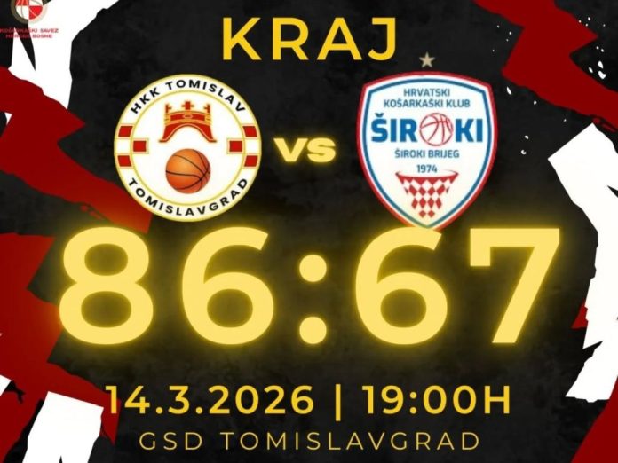 Veliki rezultat i sjajan uspjeh ostvarili su košarkaši HKK Tomislav  Jako Bau u večerašnjem susretu protiv Širokog 2. U sjajnoj atmosferi Gradske sportske dvorane, “Duvnjaci” su slavili rezultatom 86:67, čime su i službeno osigurali nastup u ovogodišnjem doigravanju za prvaka Herceg-Bosne.