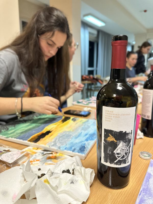 Pod pokroviteljstvom Rubis vina, radionica je pružila studentima priliku da iskažu svoje kreativne vizije i perspektive kroz umjetnost slikanja, istražujući raznolike teme i motive povezane s njihovim studentskim iskustvom. S udahnutom inspiracijom i šalicom odabrane Rubis kolekcije vina, studenti su oživjeli svoje zamisli na platnima, stvarajući jedinstvene umjetničke radove.
