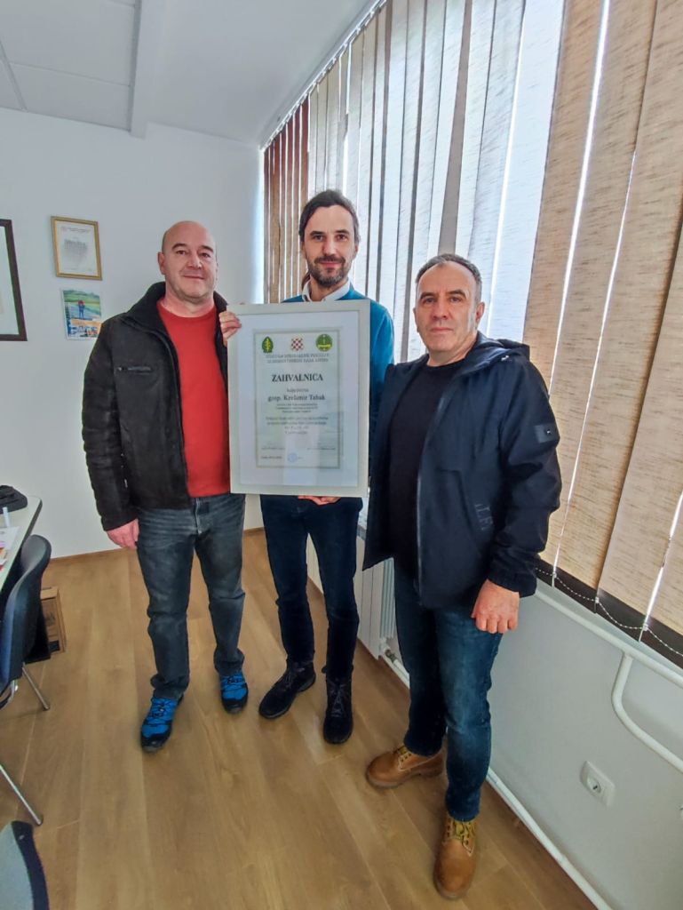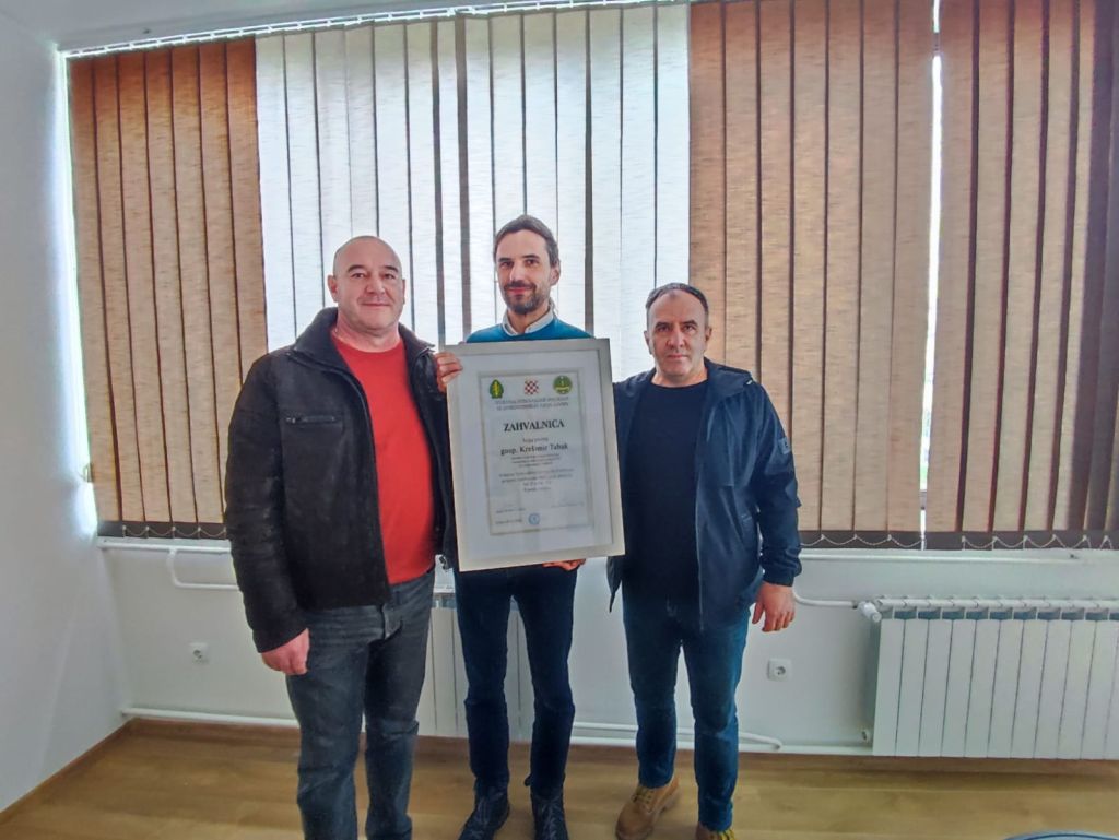 Zahvalnicu su uručili Nikola Ćosić, predsjednik Specijalne jedinice policije Livno i tajnik ove udruge Robert Ćurčija.