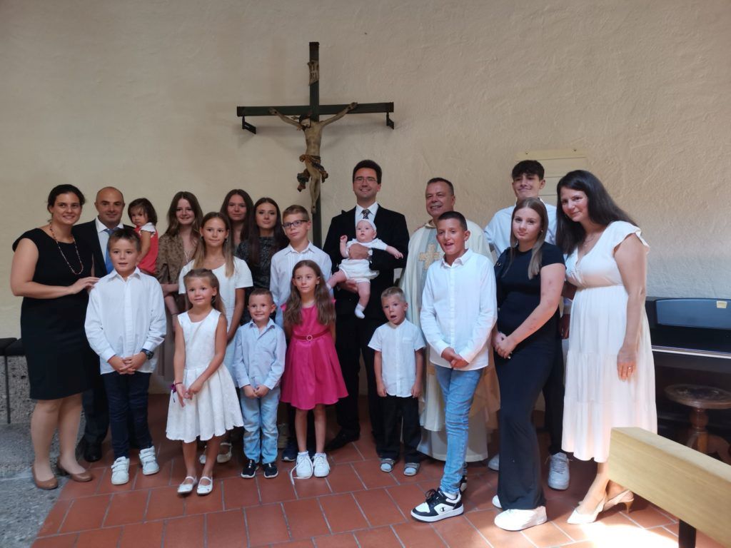 Župnik hrvatske katoličke župe München fra Petar Klapež predvodio je u subotu 16. rujna svečano misno slavlje u kapeli Duha Svetoga tijekom kojega je krstio djevojčicu Sofiju, osmo dijete u obitelji Franje i Žane Ivane Barišić, piše Hrvatska katolička mreža (hkm.hr).