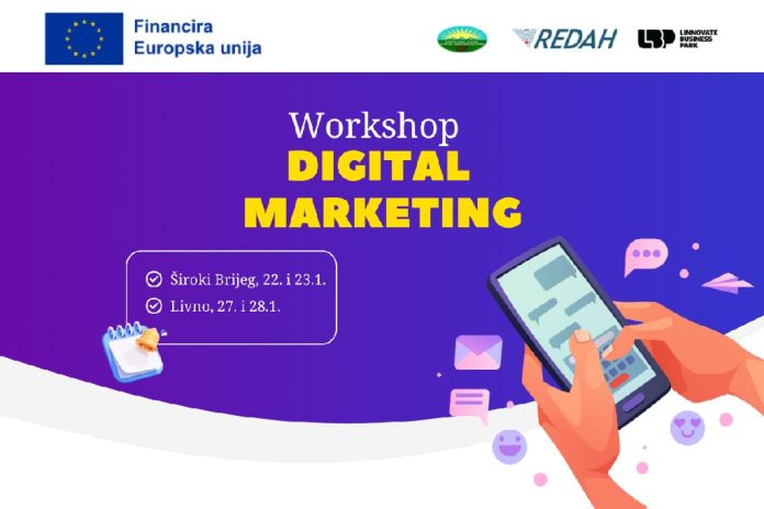 Prisutnost i promocija proizvoda i usluga na društvenim mrežama i u online medijskom prostoru u posljednjih nekoliko godina postala je preduvjet za uspješno poslovanje poduzeća i organizacija civilnog društva. Svjesna važnosti ove teme, Asocijacija za ekonomski razvoj REDAH kroz EU projekt HeRuDNet najavljuje niz od tri radionice posvećene digitalnom marketingu.