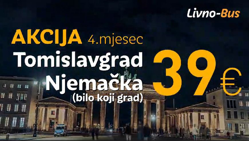 Tijekom cijelog travnja Livno – Bus nudi najpovoljnije cijene putovanja na bilo kojoj relaciji iz Tomislavgrada prema Njemačkoj! Cijena je samo 39 €!