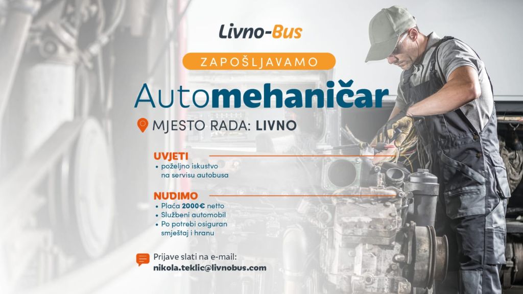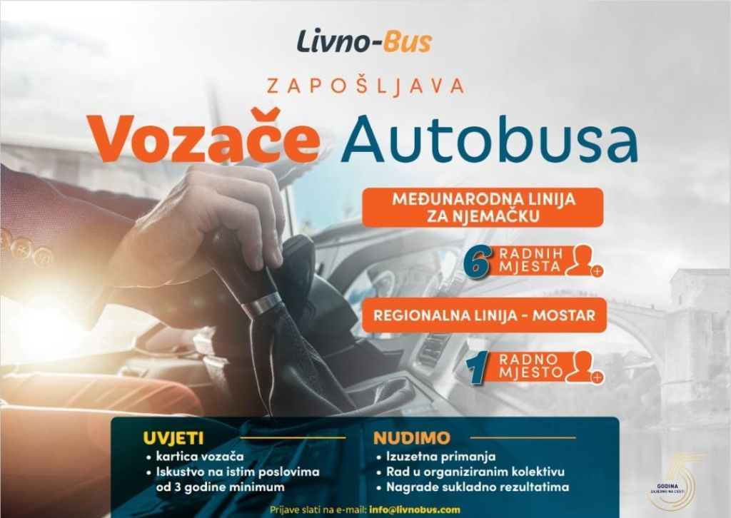 Zbog proširenja obima posla te planiranog širenja i poslovanja Livno – Bus raspisuje oglas za više radnih mjesta: