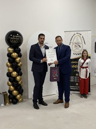 Bila je to prigoda za zahvaliti svima koji su sudjelovali u realizaciji jednog ovakvog velikog projekta. Zahvalnicu Vladi Hercegbosanske županije, ministru znanosti, prosvjete, kulture i športa Anti Tadiću uručio je predsjednik Taekwondo kluba Magone, August Orlović.