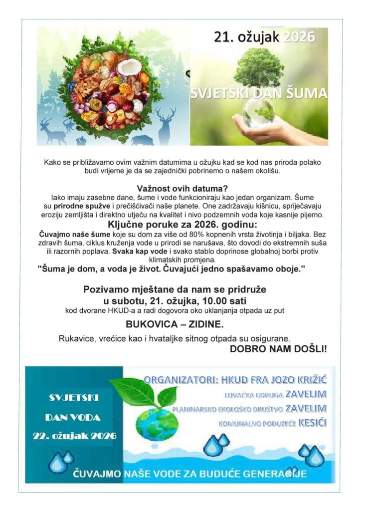 Naime 21. ožujka je Svjetski dan šuma, a 22. ožujka je Svjetski dan voda. Svjesni pojedinci, ali i svi mještani, ujedinjeni oko ova dva bitna dana odlučili su organizirati zajedničku akciju u kojoj će ne samo načelno nego i stvarno učiniti nešto za svoj okoliš.