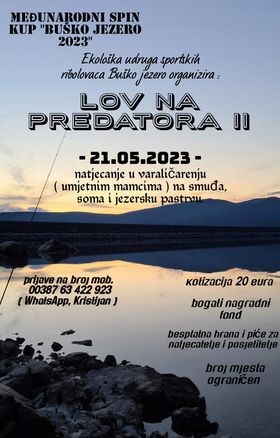 Ekološka udruga sportskih ribolovaca „Buško jezero” organizira lov na predatora II koji će se održati 21. svibnja.