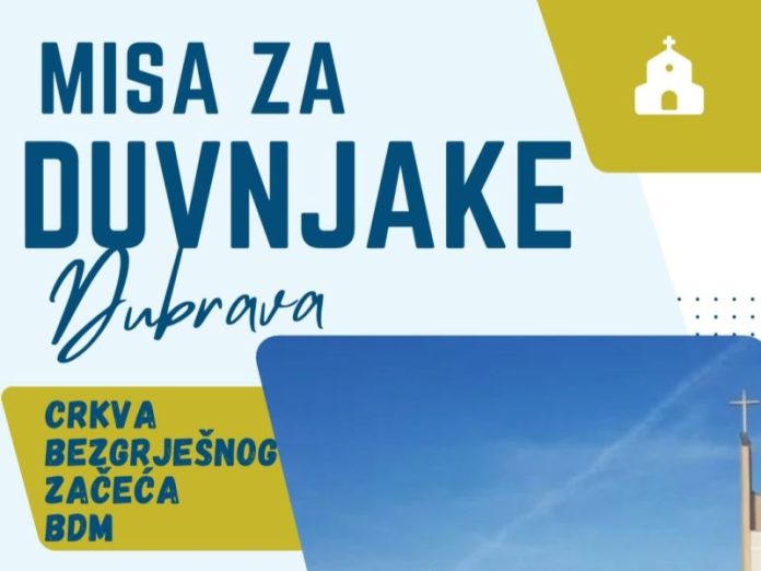 Udruga Duvnjaka Zagreb poziva sve Duvanjke i Duvnjake, ali i sve druge koji su u prilici da 3.12. dođu na tradicionalnu svetu misu za Duvnjake u crkvi Bezgrješnog začeća Blažene Djevice Marije u Dubravi (Avenija Gojka Šuška 2).
