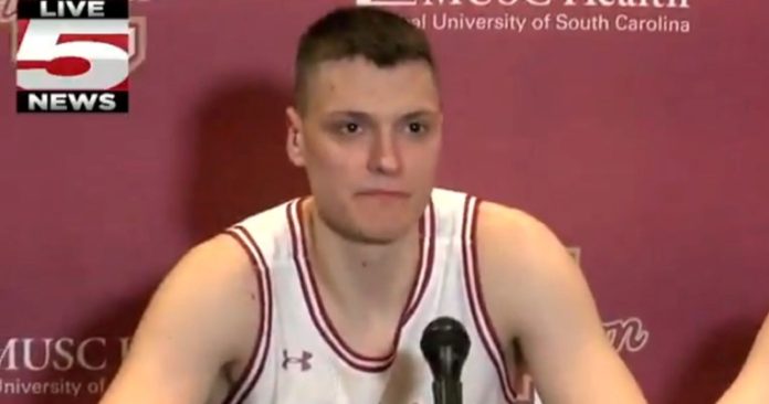 WATCH: Before tonight’s post game press conference, @CofCBasketball star Ante Brzovic asked if he could say hello to his grandmother in Croatian