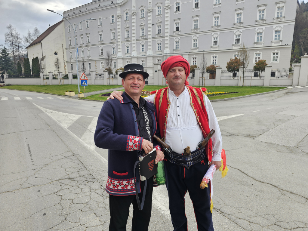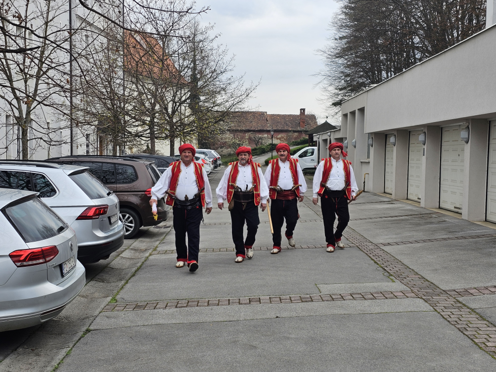No krenimo redom. Po dolasku ovogodišnje „delegacije“ Branka Matića, Milana Čuića-Miće, Ivana Vukadina i Džona Čurčića, momaka Hajdučke družine Mijata Tomića iz Tomislavgrada u Požegu prvo gostoprimstvo su im pružile kolege iz Povijesne postrojbe Trenkovi Panduri s kojima su uz „besjedu“ bili na svečanoj večeri. Nakon toga bili su pozvani na svečanost koja je bila upriličena u svečanoj dvorani „Glorija“ za predstavnike obrtnika iz gotovo svih gradova Hrvatske u sklopu gastro manifestacije ZELENO-PLAVO koja se održala na središnjem požeškom Trgu sv. Trojstva. Na toj su svečanoj večeri Duvnjaci bili dragi gosti gdje su im posebnu dobrodošlicu poželjeli i s njima se u razgovoru zadržali dr.sc. Željko Glavić, direktorica Turističke zajednice grada Požege Mirna Šimunović-Svoboda i predsjednik Ceha ugostitelja grada Požege Željko Pojer.