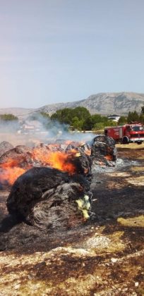 U blizini jedne farme u Mrkodolu danas je oko 13 sati izbio požar u kojem je izgorjelo oko 150 bala sijena.