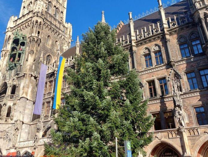 U sklopu Božićnog sajma u Münchenu na Marienplatzu postavljeno je božićno drvce, piše Fenix-magazin.