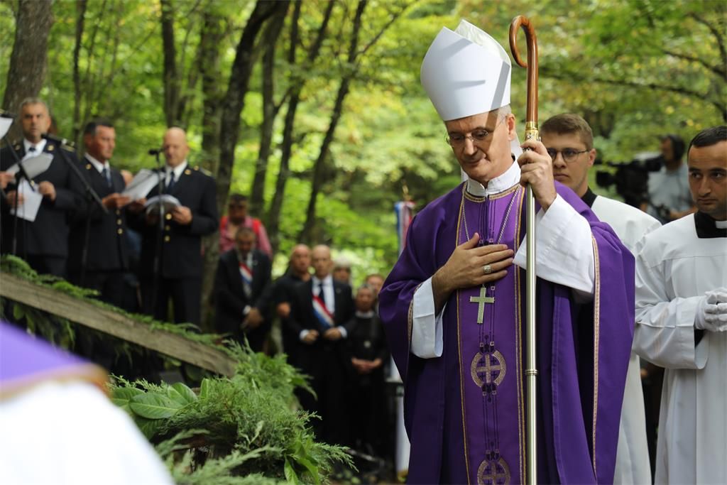 “Oprostite, ali ne zaboravite nas. Jer zaborav je drugo ubojstvo”, istaknuo je nadbiskup Kutleša i dodao: “Gradite mir, ali na temeljima istine. Jer samo istina oslobađa (Iv 8,32). Budite narod koji se ne boji pogledati u lice svojoj prošlosti jer tako se jača budućnost. Naša domovina neće pronaći potpuni mir dok ne pokopa sve svoje mrtve i dok za svakoga ne zasja svijeća sjećanja. I znajte – mi, koje su htjeli učiniti nevidljivima – sada stojimo pred licem Božjim, u svjetlu koje nikada ne gasne. Mi, koje su bacili u tamu, sada hodamo u svjetlu Jaganjčevu. Mi, koje nisu mogli zatomiti lažima, sada pjevamo pjesmu istine. Ne bojte se tame ovoga svijeta jer svjetlo dolazi. Jednog dana svi ćemo se naći na strani gdje nema ni ponora ni smrti ni nepravde, nego samo mir i radost u Bogu.”