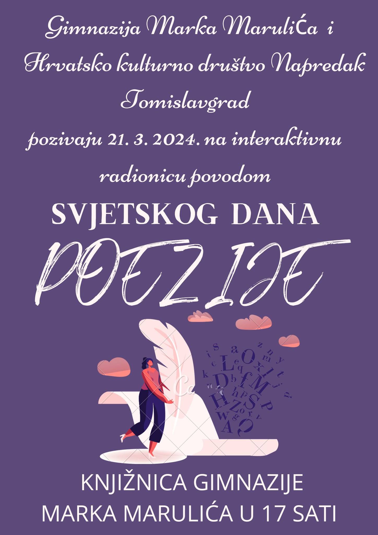 Povodom Svjetskog dana poezije HKD Napredak Tomislavgrad u suradnji s knjižnicom Gimnazije Marka Marulića sutra, 21. ožujka organizira književnu večer.