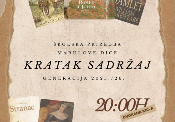 Nakon što su na jučer završenom Festivalu srednjoškolskog teatra BiH osvojili simpatije publike i nagrade žirija, maturanti Gimnazije Marka Marulića Tomislavgrad spremni su za svoju završnu priredbu – mali, ali poseban simbol oproštaja i poklon školi, koja će se održati sutra, 30. travnja u dvorani KIC-a s početkom u 20:00 sati.
